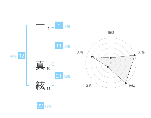 一 真絃さんの地格は21画の5点!