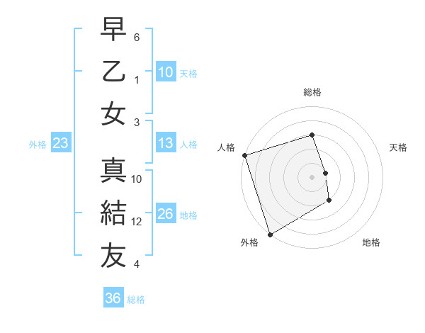 早乙女 真結友さんを姓名の画数から五運を鑑定