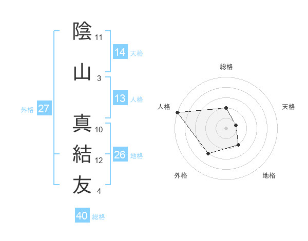 陰山 真結友さんを姓名の画数から五運を鑑定