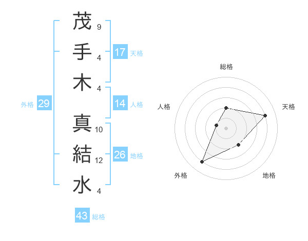 茂手木 真結水さんを姓名の画数から五運を鑑定