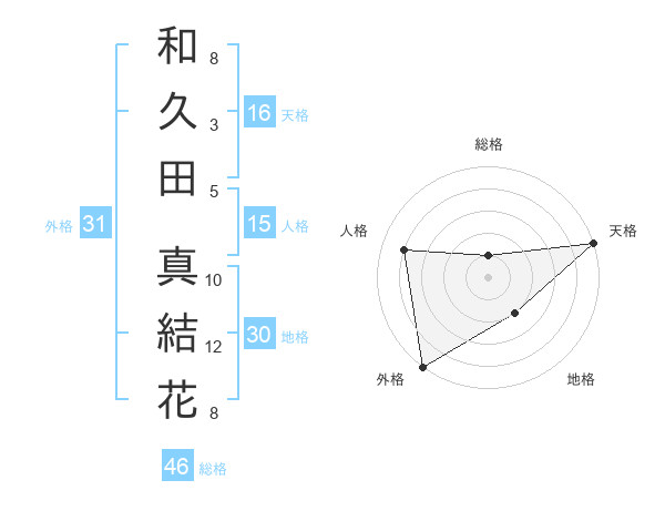 和久田 真結花さんを姓名の画数から五運を鑑定