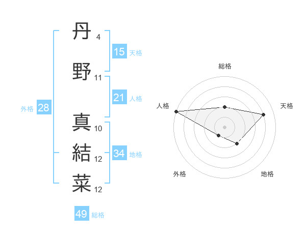 丹野 真結菜さんを姓名の画数から五運を鑑定