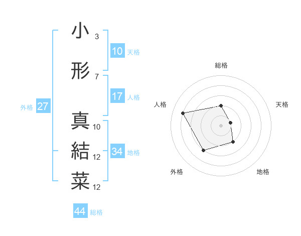 小形 真結菜さんの総格は44画の2点!