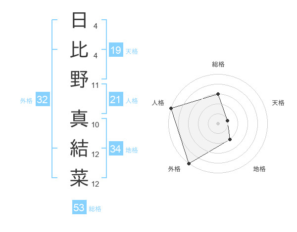 日比野 真結菜さんの総格は53画の3点