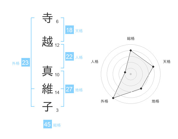 寺越 真維子さんの総格は45画の4点!