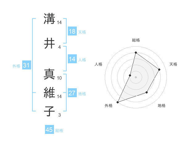 溝井 真維子さんの総格は45画の4点!