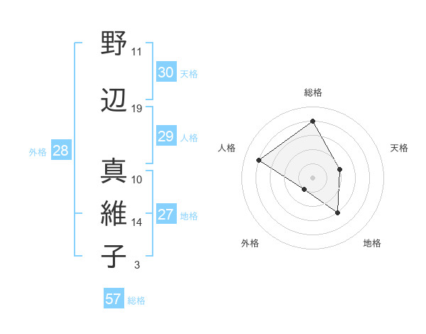 野辺 真維子さんを姓名の画数から五運を鑑定