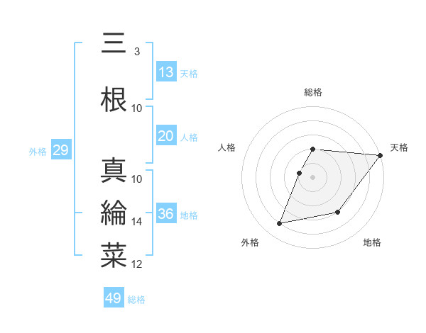 三根 真綸菜さんの総格は49画の2点!
