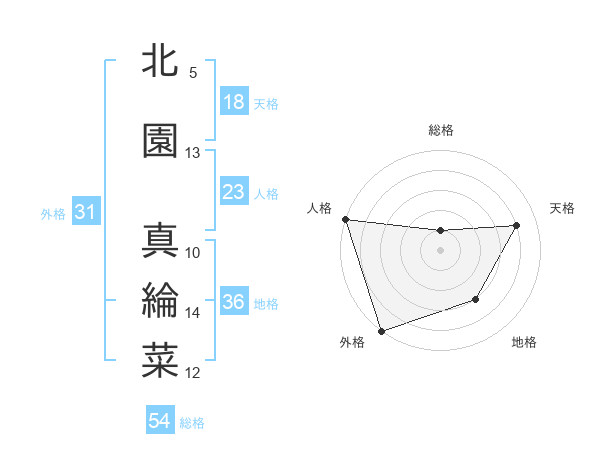 北園 真綸菜さんの天格は18画の4点