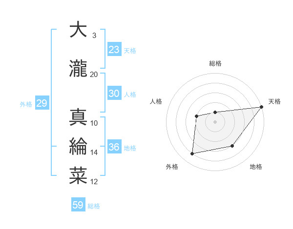 大瀧 真綸菜さんを姓名の画数から五運を鑑定