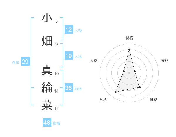 小畑 真綸菜さんの総格は48画の4点!