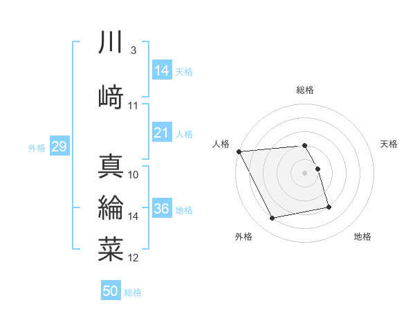 川﨑 真綸菜さんを姓名の画数から五運を鑑定