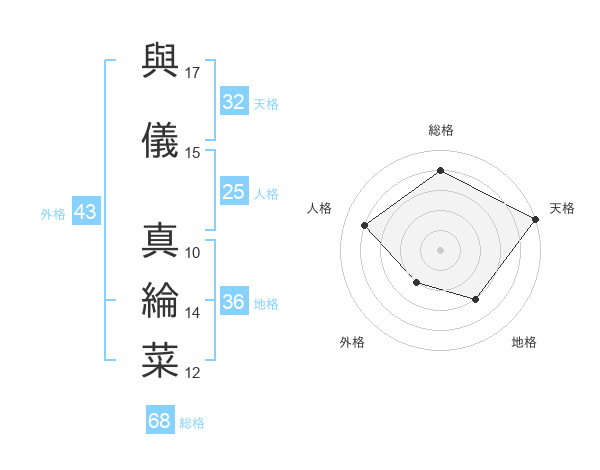 與儀 真綸菜さんの総格は68画の4点!