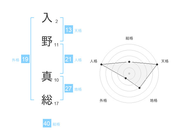 入野 真総さんの天格は13画の5点!
