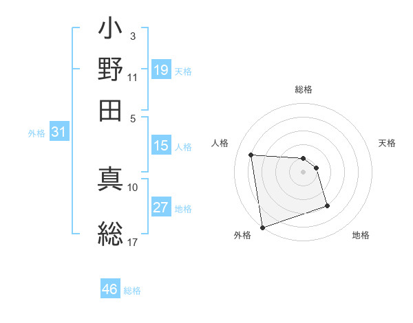 小野田 真総さんの外格は31画の5点!
