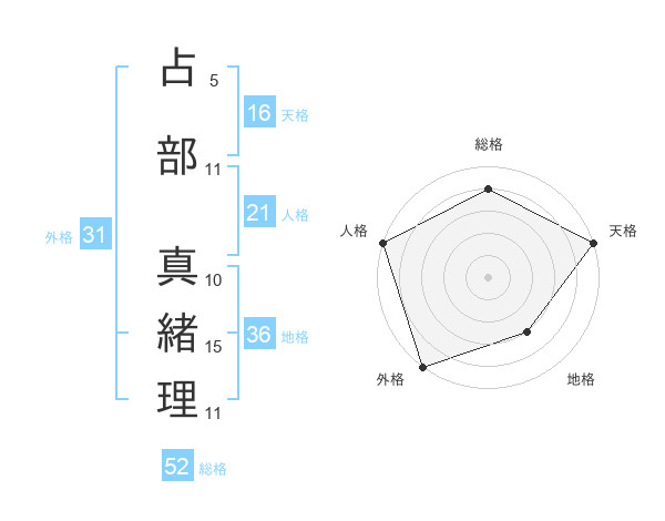 占部 真緒理さんの天格は16画の5点!