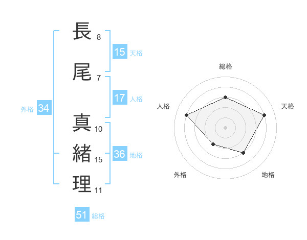 長尾 真緒理さんを姓名の画数から五運を鑑定