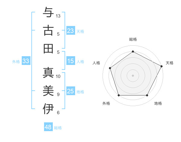 与古田 真美伊さんを姓名の画数から五運を鑑定