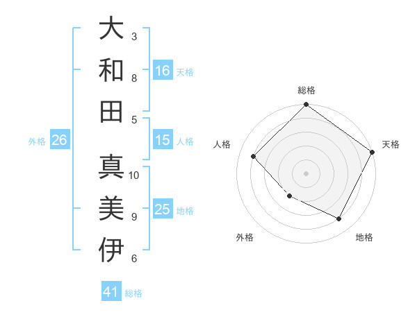 大和田 真美伊さんを姓名の画数から五運を鑑定