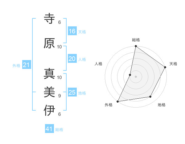 寺原 真美伊さんを姓名の画数から五運を鑑定