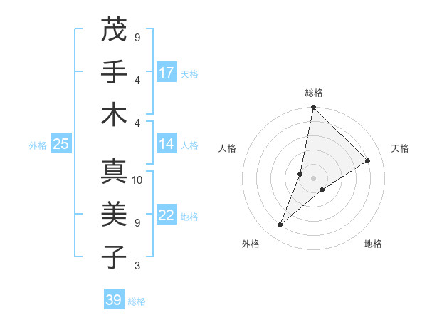 茂手木 真美子さんを姓名の画数から五運を鑑定