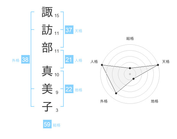 諏訪部 真美子さんの天格は37画の5点!
