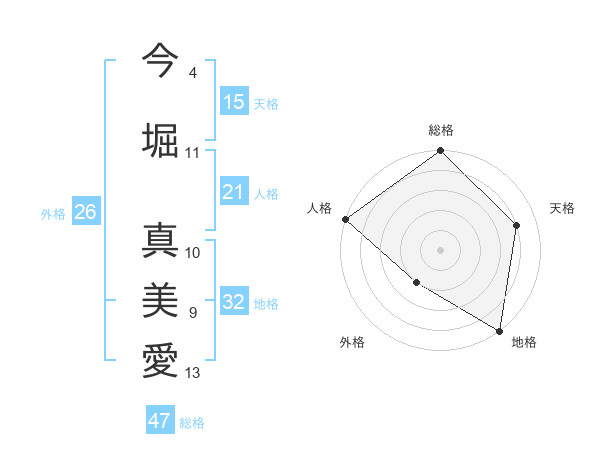 今堀 真美愛さんを姓名の画数から五運を鑑定