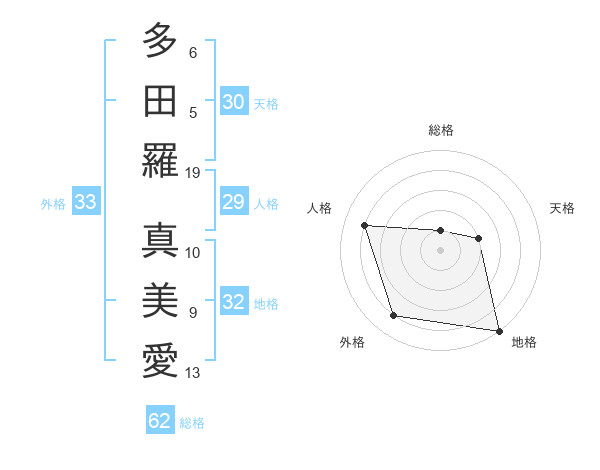 多田羅 真美愛さんを姓名の画数から五運を鑑定