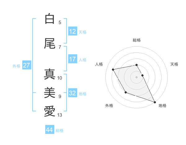 白尾 真美愛さんの地格は32画の5点!