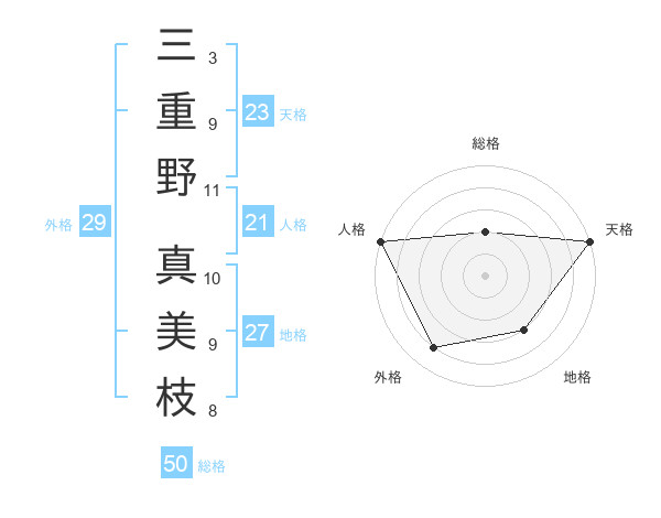 三重野 真美枝さんを姓名の画数から五運を鑑定