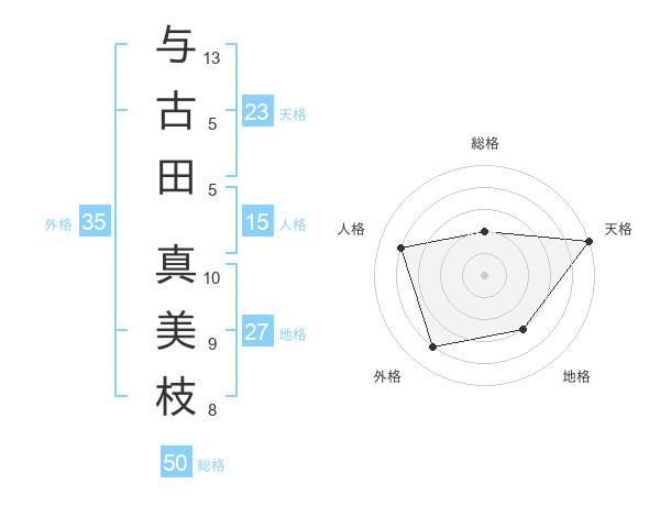 与古田 真美枝さんの天格は23画の5点!