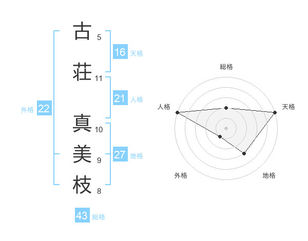 古荘 真美枝さんを姓名の画数から五運を鑑定