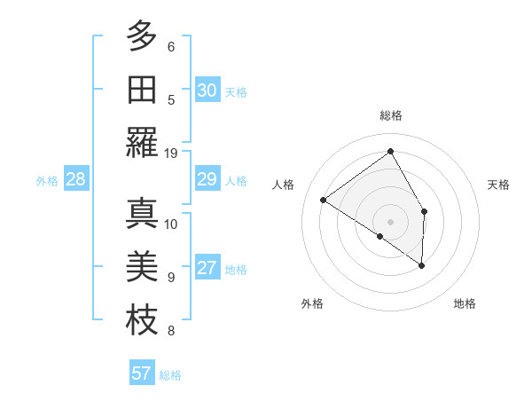 多田羅 真美枝さんを姓名の画数から五運を鑑定