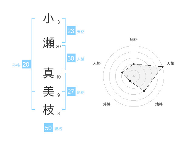 小瀬 真美枝さんの総格は50画の2点!