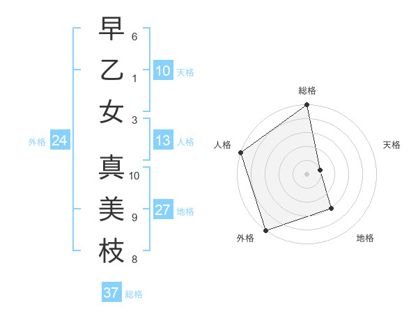 早乙女 真美枝さんの総格は37画の5点!