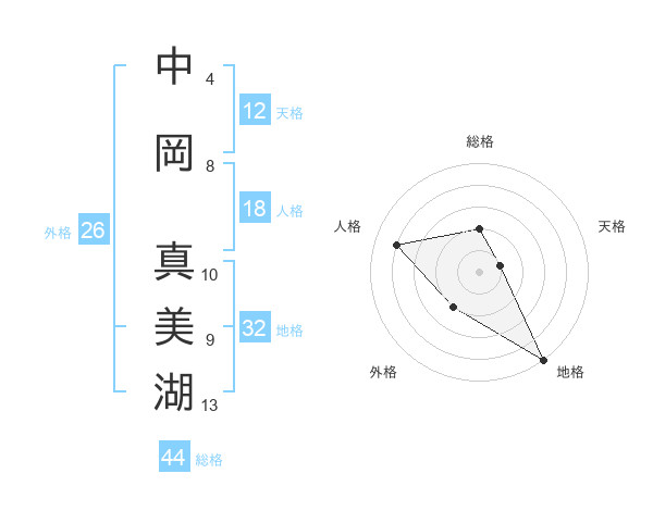 中岡 真美湖さんの総格は44画の2点!
