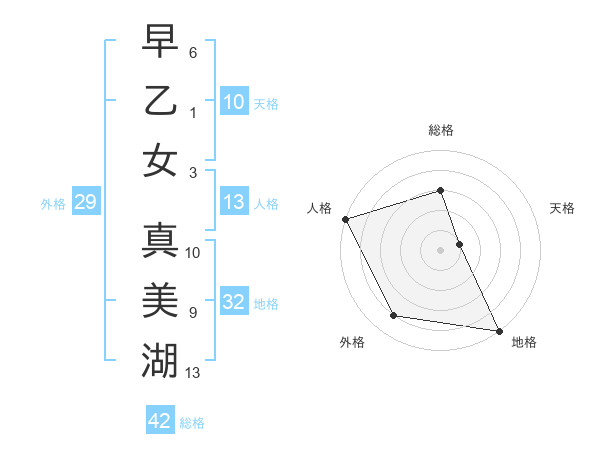 早乙女 真美湖さんを姓名の画数から五運を鑑定