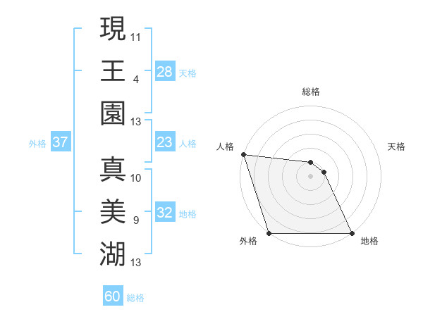 現王園 真美湖さんの外格は37画の5点!