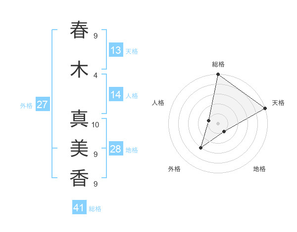 春木 真美香さんの総格は41画の5点!