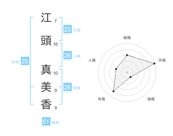 江頭 真美香さんを姓名の画数から五運を鑑定
