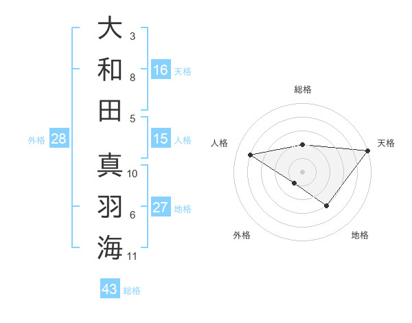 大和田 真羽海さんの総格は43画の2点!