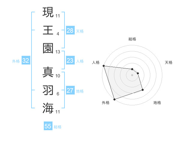 現王園 真羽海さんの外格は32画の5点!