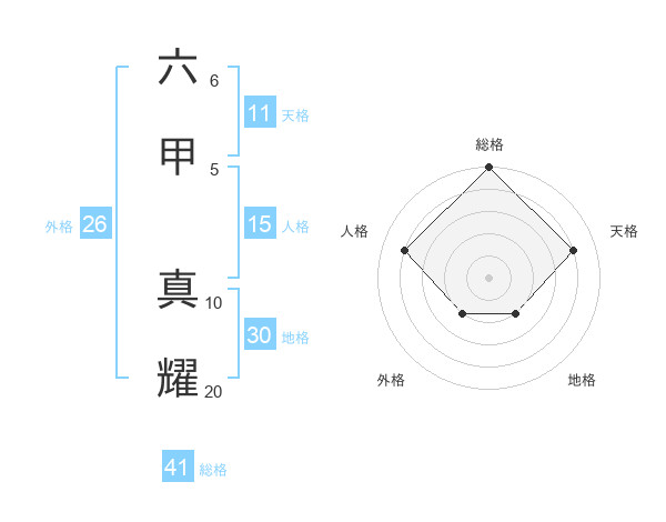 六甲 真耀さんの総格は41画の5点!