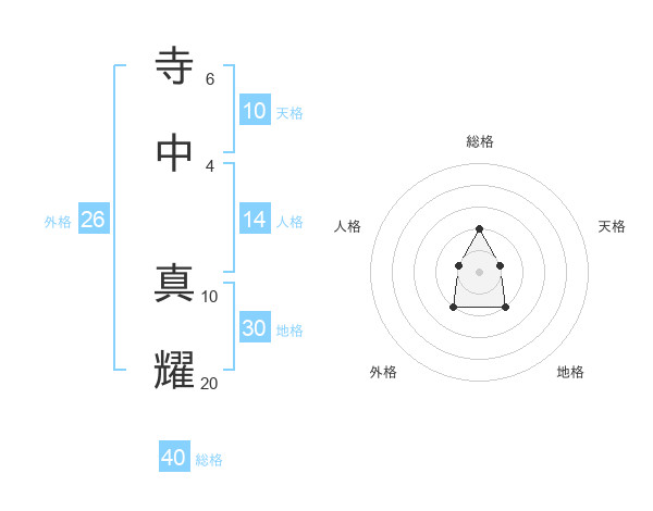 寺中 真耀さんの総格は40画の2点!