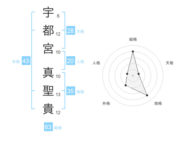 宇都宮 真聖貴さんの総格は63画の4点!
