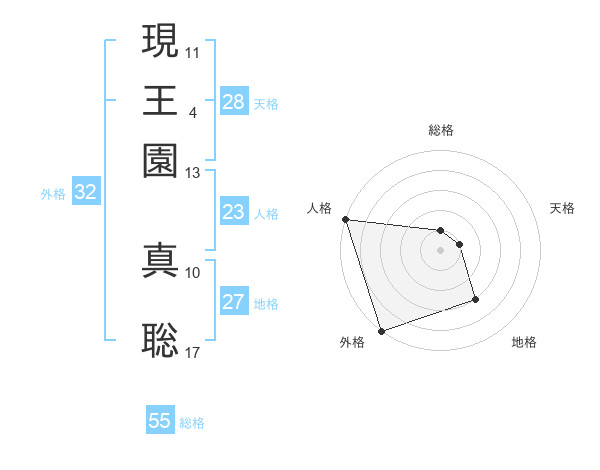 現王園 真聡さんを姓名の画数から五運を鑑定