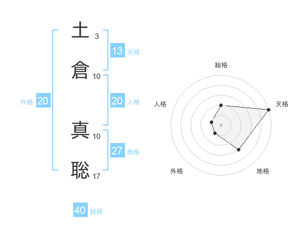 土倉 真聡さんの天格は13画の5点!
