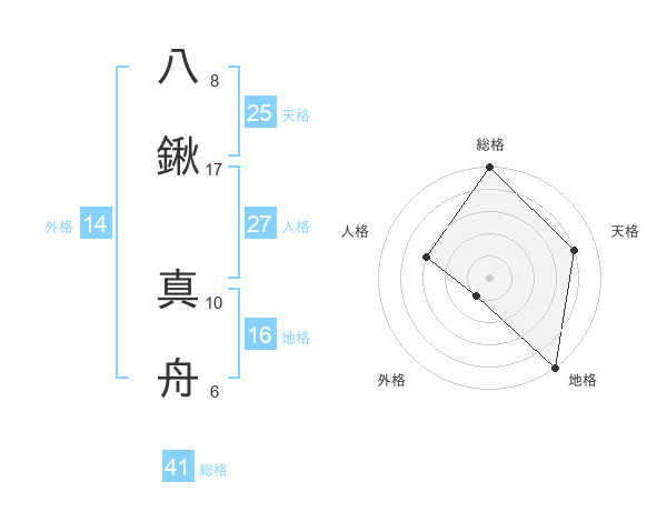 八鍬 真舟さんを姓名の画数から五運を鑑定