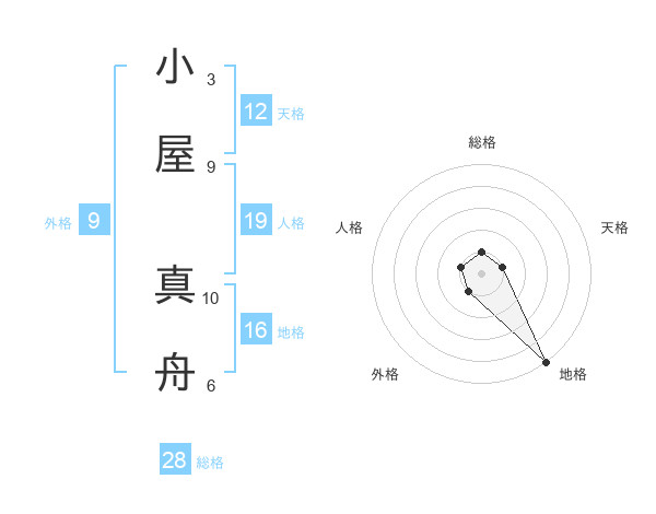 小屋 真舟さんの総格は28画の1点!