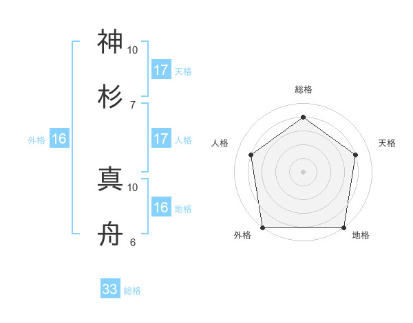 神杉 真舟さんの天格は17画の4点!
